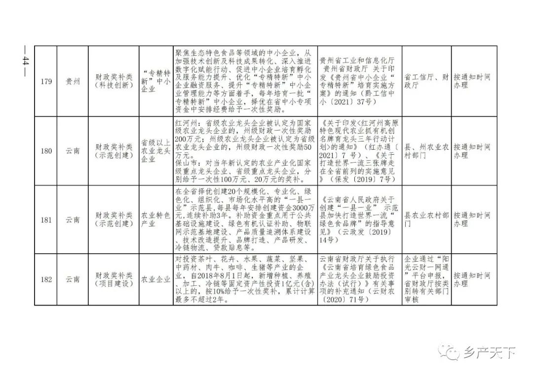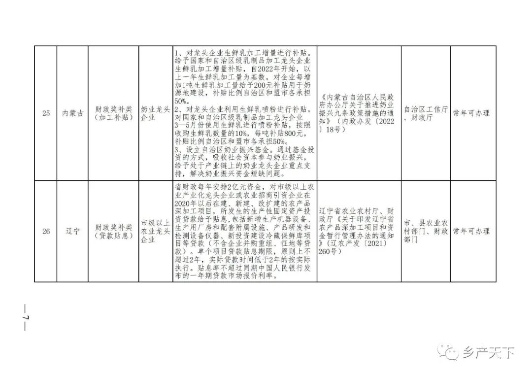 為加強對農(nóng)業(yè)產(chǎn)業(yè)化龍頭企業(yè)的精準服務(wù),農(nóng)業(yè)農(nóng)村部鄉(xiāng)村產(chǎn)業(yè)發(fā)展司收集了各省(區(qū)、市)對龍頭企業(yè)的支持政策,于近期印發(fā)《農(nóng)業(yè)產(chǎn)業(yè)化龍頭企業(yè)支持政策清單》(簡稱《清單》),供各地互相參考學(xué)習(xí)。