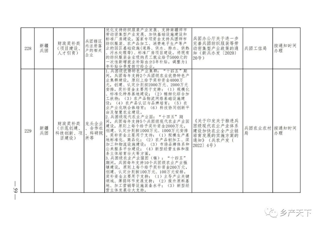 《清單》按照“政策類別、支持對象、具體內(nèi)容、政策依據(jù)、辦理部門、辦理時間”進行梳理,共涉及“財政獎補、金融支持、用地保障、稅費減免、水電優(yōu)惠、政策引導(dǎo)”等六大類229條政策。《清單》通知,各地支持政策發(fā)生變化,要及時反饋,鄉(xiāng)村產(chǎn)業(yè)發(fā)展司將定期更新發(fā)布。
